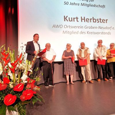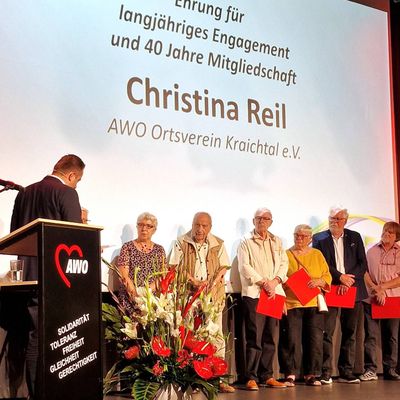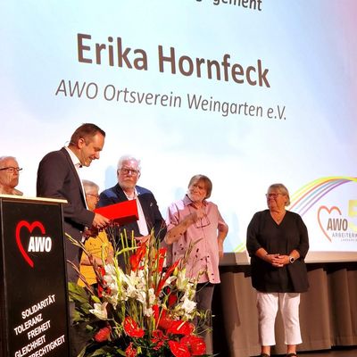 Im Anschluss ehrte der Kreisverband Mitglieder, die durch ihr langjähriges Engagement und ihre Verdienste maßgeblich zum Erfolg der AWO Karlsruhe-Land beigetragen haben. Besonders hervorgehoben wurde Roland Herberger, der in Anerkennung seiner Verdienste zum Ehrenvorsitzenden des Kreisverbandes ernannt wurde. In seiner Rede betonte Uwe Presler: „Wir feiern, was war, aber auch, was wir gemeinsam nochschaffen können.“