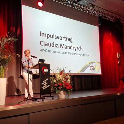 Für neue Impulse sorgte Claudia Mandrysch, Vorsitzende des AWO Bundesverbandes, in ihrem engagierten Vortrag. Sie rief dazu auf, mutig und kreativ die Herausforderungen der Gegenwart anzugehen: „Es braucht Mut und Kreativität, um eine Zukunft zu gestalten, in der niemand zurückgelassen wird.“